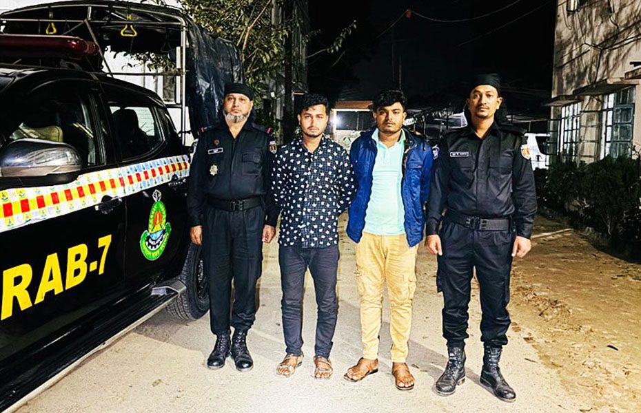 চট্টগ্রামে দুই মাদক ব্যবসায়ী আটকের বিষয়ে, র্যাব-৭ চট্টগ্রামের সিনিয়র সহকারী পরিচালক (মিডিয়া) মো: নুরুল আবছার জানান, গোপন তথ্যের ভিত্তিতে র্যাবের একটি অভিযানিক দল ফেনী পৌরসভা এলাকায় চেকপোষ্ট স্থাপন করে গাড়ী তল্লাশি শুরু করে। এসময় র্যাবের চেকপোস্টের দিকে আসা একটি পিকআপকে থামানোর সংকেত দিলে ওই পিকআপটি না থামিয়ে কৌশলে দ্রুত পালিয়ে যাওয়ার চেষ্টাকালে র্যাব সদস্যরা তাদের আটক করে। পরে প্রাথমিক জিজ্ঞাসাবাদে পিকআপের পিছনে মালামাল বহন করার জায়গায় অভিনব কৌশলে বাক্সের ভিতর রাখা ১শ’ কেজি গাঁজা উদ্ধার করা হয়। তাদের পরবর্তী আইনানুগত ব্যবস্থা গ্রহনের জন্য ফেনী মডেল থানায় হস্তান্তর করা হয়েছে।