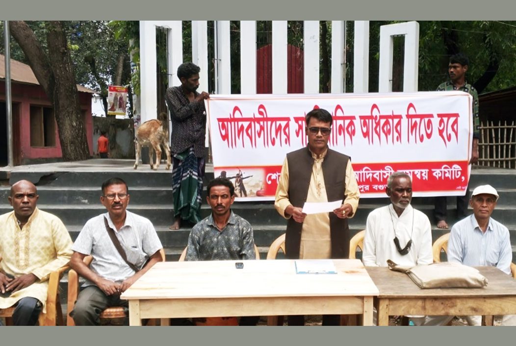 ক্ষুদ্র নৃগোষ্ঠীদের জান মালের নিরাপত্তার দাবিতে উপজেলা নির্বাহী কর্মকর্তার কার্যালয়ের সামনে অবস্থান কর্মসূচি ঘোষণা করেছে আদিবাসী সমন্বয় কমিটি। বুধবার (০৮ মে) বেলা ১১ টায় বগুড়ার শেরপুরে পৌর শহীদ মিনারে এক সংবাদ সম্মেলনে এই কর্মসূচি ঘোষণা করা হয়।