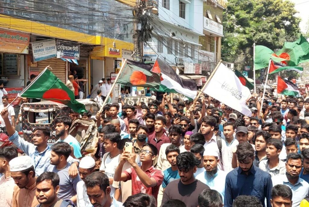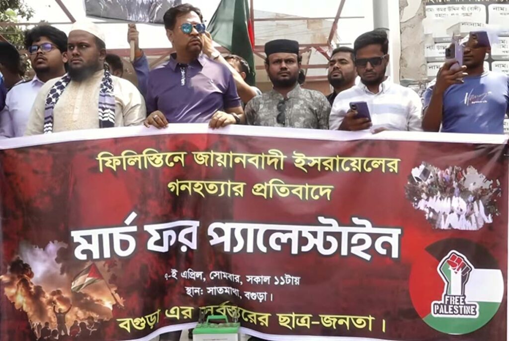 গাজায় ইসরায়েলি বাহিনীর সামরিক বর্বরতার বিরুদ্ধে বগুড়ায় ব্যাপক বিক্ষোভ মিছিল ও মানববন্ধন অনুষ্ঠিত হয়েছে।