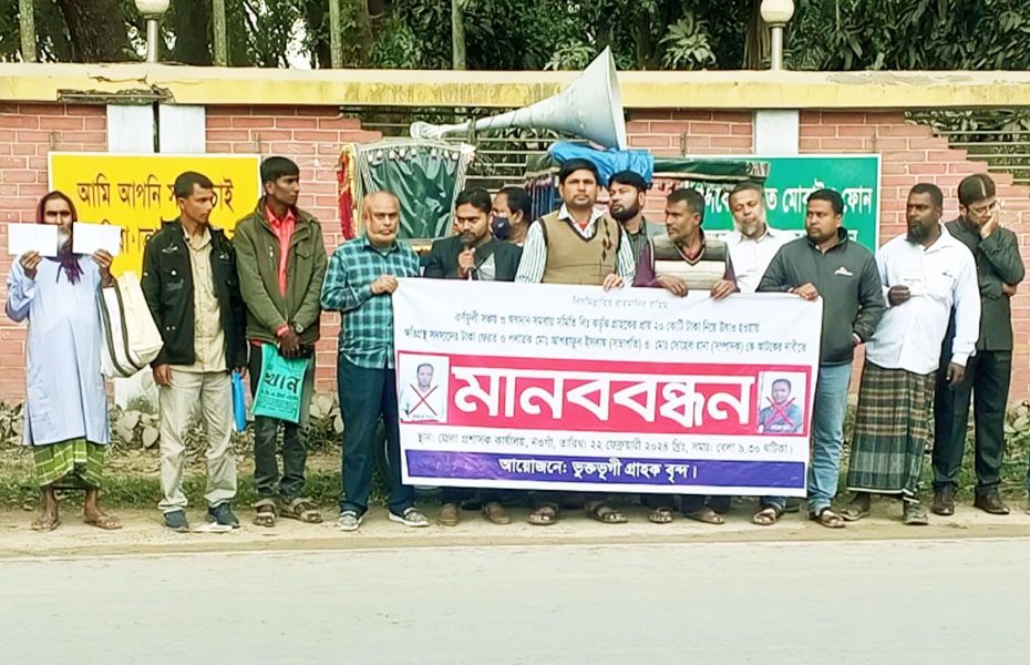 বৃহস্পতিবার (২২ ফেব্রুয়ারি) সকাল ১০টার দিকে নওগাঁ সদর উপজেলার সার্কিট হাউজের সামনে এ মানববন্ধনের আয়োজন করা হয়। কর্ণফুল সমবায় সমিতির সভাপতি আশরাফুল ইসলাম মহাদেবপুর উপজেলার উত্তর গ্রাম ইউনিয়নের বামন সাতা গ্রামের খোদা বক্স মন্ডলের ছেলে। বেশ কয়েকটি উপজেলায় কর্ণফুলী নামে শাখা পরিচালিত হতো বর্তমানে সেই শাখা গুলোও তালাবদ্ধ।