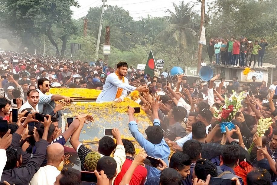 প্রসঙ্গত, গত বুধবার (২৯ নভেম্বর) প্রথমবার নির্বাচনী এলাকায় যান বাংলাদেশ অধিনায়ক সাকিব আল হাসান। মাগুরায় পৌঁছে একাধিকবার জাতীয় সংসদ নির্বাচনের আচরণবিধি লঙ্ঘন করেন বলে অভিযোগ ওঠে। তবে বুধবার দুপুরে জেলার দলীয় কার্যালয়ে নির্বাচন আচরণবিধি সবাইকে মেনে চলার আহ্বান জানিয়ে ছিলেন সাকিব আল হাসান নিজেেই।