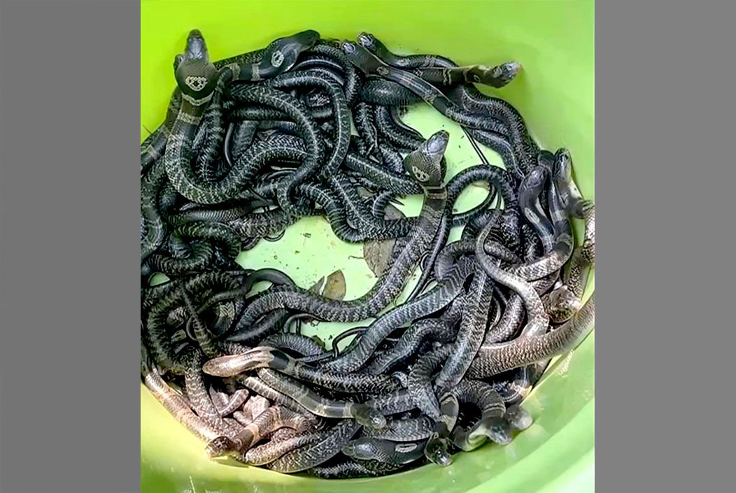 এরপর সাপুড়েকে খবর দেয়া হয়। পরে সাপুড়ে এসে প্রাচীরের ভেতর পদ্মগোখরা সাপের বাসার সন্ধান পান। সেখান থেকে দুটি বড় পদ্মগোখরা সাপ ও ৪২টি বাচ্চা উদ্ধার করেন তিনি। এসময় একটি সাপরে বাচ্চা মারা যায়।