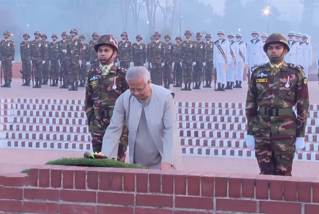 মহান বিজয় দিবসে জাতীয় স্মৃতিসৌধে বীর শহীদদের প্রতি শ্রদ্ধা নিবেদন করেছেন প্রধান উপদেষ্টা অধ্যাপক ড. মুহাম্মদ ইউনূস।