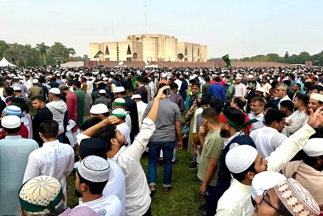 শহীদ হাদির জানাজায় অংশ নিতে সংসদ ভবন এলাকায় মানুষের ঢল