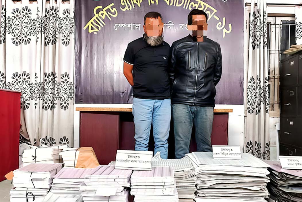এ ঘটনায় গ্রেফতার করা হয়েছে জেলার বাঘোপাড়া দক্ষিণপাড়ার মাহমুদুল হাসান মিলন (৪২) এবং রাশেদুল ইসলাম রনজু (৪২) নামের দুজনকে।