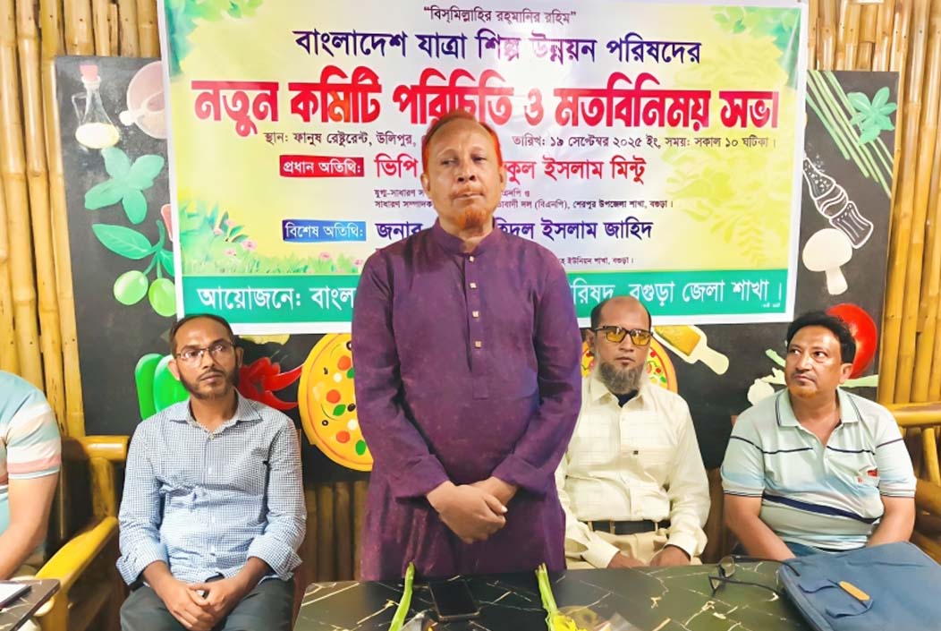বাংলাদেশ যাত্রা শিল্প উন্নয়ন পরিষদ বগুড়া জেলা শাখার আয়োজনে নতুন কমিটি পরিচিতি ও মতবিনিময় সভা শুক্রবার ( ১৯ সেপ্টেম্বর) সকাল ১১ টায় বগুড়ার শেরপুর শহরের ফানুষ রেষ্টুরেন্টে অনুষ্ঠিত হয়েছে।