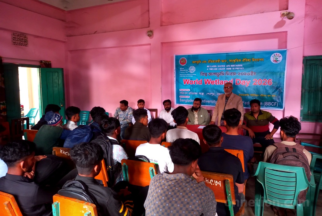 নিজস্ব প্রতিবেদক : “জলাভূমি এবং ঐতিহ্যবাহী জ্ঞান, সাংস্কৃতিক ঐতিহ্য উদযাপন” এই বিশেষ প্রতিপাদ্যকে সামনে রেখে বগুড়ার শেরপুরে যথাযোগ্য মর্যাদায় বিশ্ব জলাভূমি দিবস পালিত হয়েছে। সোমবার (২ ফেব্রুয়ারি) বেলা ১১টায় উপজেলার খামারকান্দি ইউনিয়ন পরিষদ হলরুমে এই দিবস উপলক্ষে এক গুরুত্বপূর্ণ আলোচনা সভার আয়োজন করা হয়। বাংলাদেশ বায়োডাইভারসিটি কনজারভেশন ফেডারেশন (বিবিসিএফ)-এর সার্বিক সহযোগিতায় এবং পরিবেশ প্রতিরক্ষা সংস্থার উদ্যোগে আয়োজিত এই অনুষ্ঠানে স্থানীয় পরিবেশকর্মী ও সমাজের বিশিষ্টজনরা উপস্থিত ছিলেন।