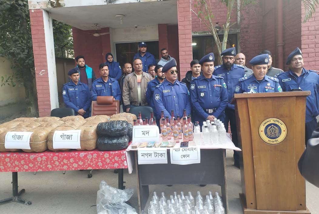 নওগাঁ শহরের হরিজন সুইপার কলোনিতে নওগাঁ সদর থানা পুলিশ ও জেলা গোয়েন্দা শাখা (ডিবি) এর প্রায় ৩ ঘন্টা ব্যাপী যৌথ বিশেষ অভিযানে প্রায় ৭০ কেজি গাঁজা ও ১৬ লিটার ৬০০ গ্রাম বাংলা মদ উদ্ধার করা হয়েছে। এসময় মাদক বিক্রির নগদ ১ লক্ষ ৯৮ হাজার টাকা জব্দ করা হয়।