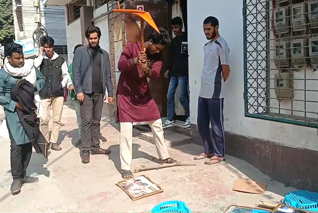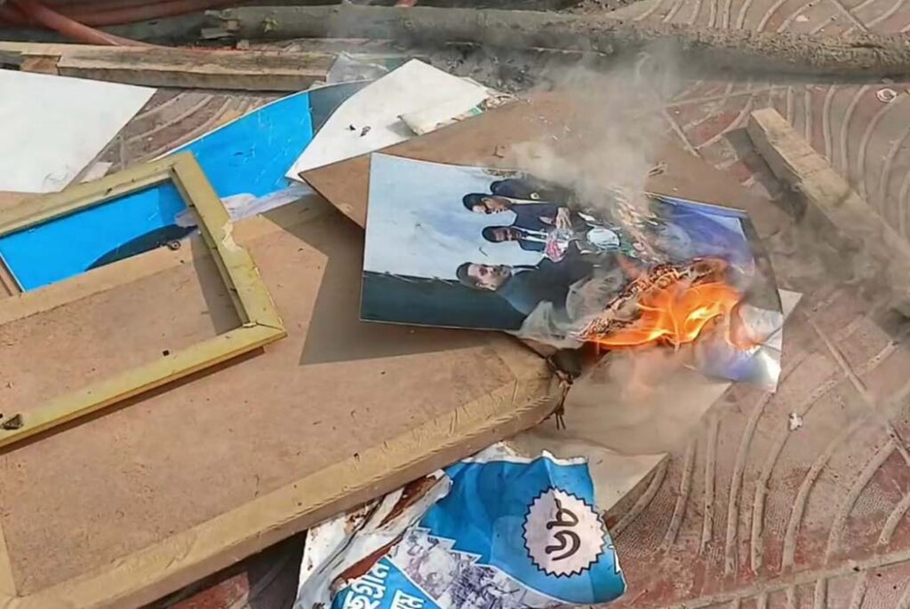 অবস্থা বেগতিক দেখে জাতীয় পাটির নেতাকর্মীরা পালিয়ে যায়। পরে অফিস কক্ষে ঢুকে দলটির প্রতিষ্ঠাতা চেয়ারম্যান হোসাইন মোহাম্মদ এরশাদের বেশ কিছু ছবি, দলীয় প্রতিক লাঙ্গলসহ অন্যান্য জিনিসপত্র ভাংচুর করে ছাত্র-জনতা। পরে সেগুলোতে আগুন ধরিয়ে দেয় তারা।