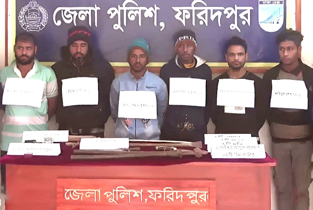 ফরিদপুরে ডাকাত চক্রের ৬ সদস্যকে আটক করেছে পুলিশ। সালথা উপজেলায় ৩টি বাড়িতে ডাকাতির ঘটনার সাথে জড়িত থাকায় ৬ জনকে আটক করা হয়। এসময় ডাকাতির কাজে ব্যবহৃত অস্ত্র ও লুণ্ঠিত মালামাল উদ্ধার করা হয়। জেলা পুলিশ সুপার মো: মের্শেদ আলম বিষয়টি নিশ্চিত করেছন