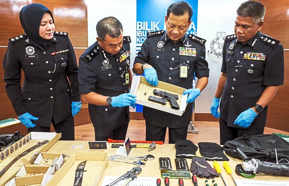 মালয়েশিয়ার পাহাং পুলিশ প্রধান দাতুক সেরি ইয়াহয়া ওথমান জানান, তাদের কাছ থেকে ৭ রাউন্ড গুলিসহ ১টি গ্লক-১৭ টাইপ পিস্তল জব্দ করা হয়। এ ছাড়াও চুরির কাজে ব্যবহৃত আরও সরঞ্জামও পাওয়া গেছে, যার মধ্যে রয়েছে ড্রিল ও গ্রাইন্ডার, ম্যাচ এবং লোহার হাতুড়িসহ বেশ কিছু জিনিস রয়েছে।
