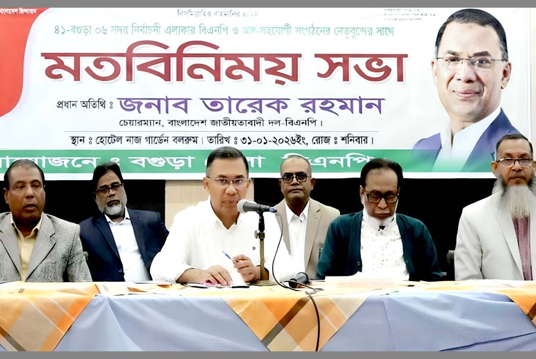 শনিবার (৩১ জানুয়ারি) বগুড়ার একটি চার তারকা হোটেলের বলরুমে আয়োজিত মতবিনিময় সভায় এসব কথা বলেন তারেক রহমান। ত্রয়োদশ জাতীয় সংসদ নির্বাচন সামনে রেখে নিজের নির্বাচনী এলাকা বগুড়া–৬ (সদর) আসনের বিএনপি নেতাদের সঙ্গে এই সভা অনুষ্ঠিত হয়।