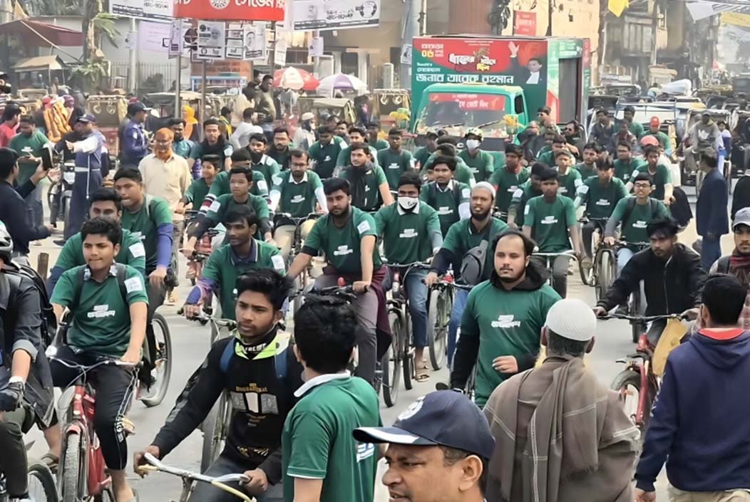 সোমবার (৯ ফেব্রুয়ারি) বেলা ১২টার দিকে বিভিন্ন বিশ্ববিদ্যালয়ের শিক্ষার্থীদের উদ্যোগে এই কর্মসূচি অনুষ্ঠিত হয়। আয়োজকদের ভাষ্য, সুস্থ জীবনধারা ও পরিচ্ছন্ন শহর গঠনের বার্তা পৌঁছে দিতেই সাইকেল র্যালির মতো পরিবেশবান্ধব কর্মসূচি বেছে নেওয়া হয়েছে।